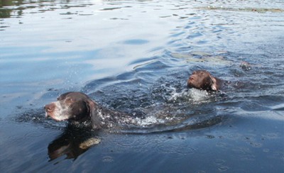 | En och annan hund bryter fortfarande vattenytan... | Är man inte snabbast blir man lätt en dubbeldecker... |