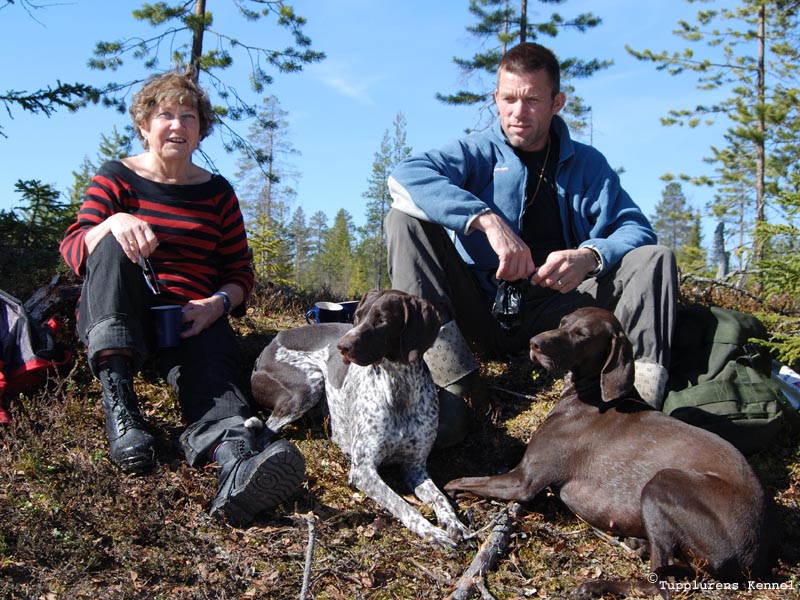 080525. Morsdag och en tur i skogen med kaffe och bullar. Sol, snö, björkar som knoppas, hundbad, skavsår och tjädertupp på vingar. |